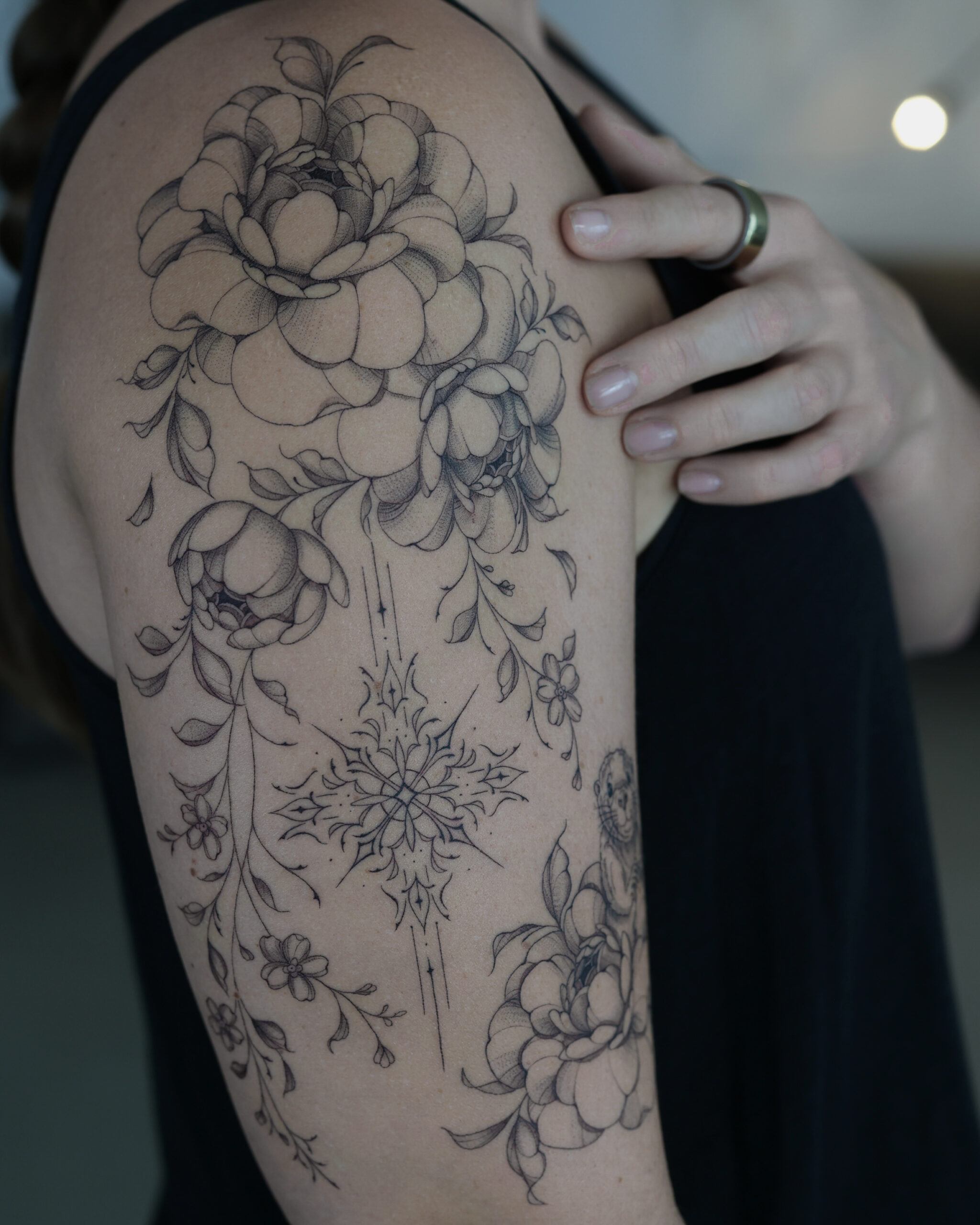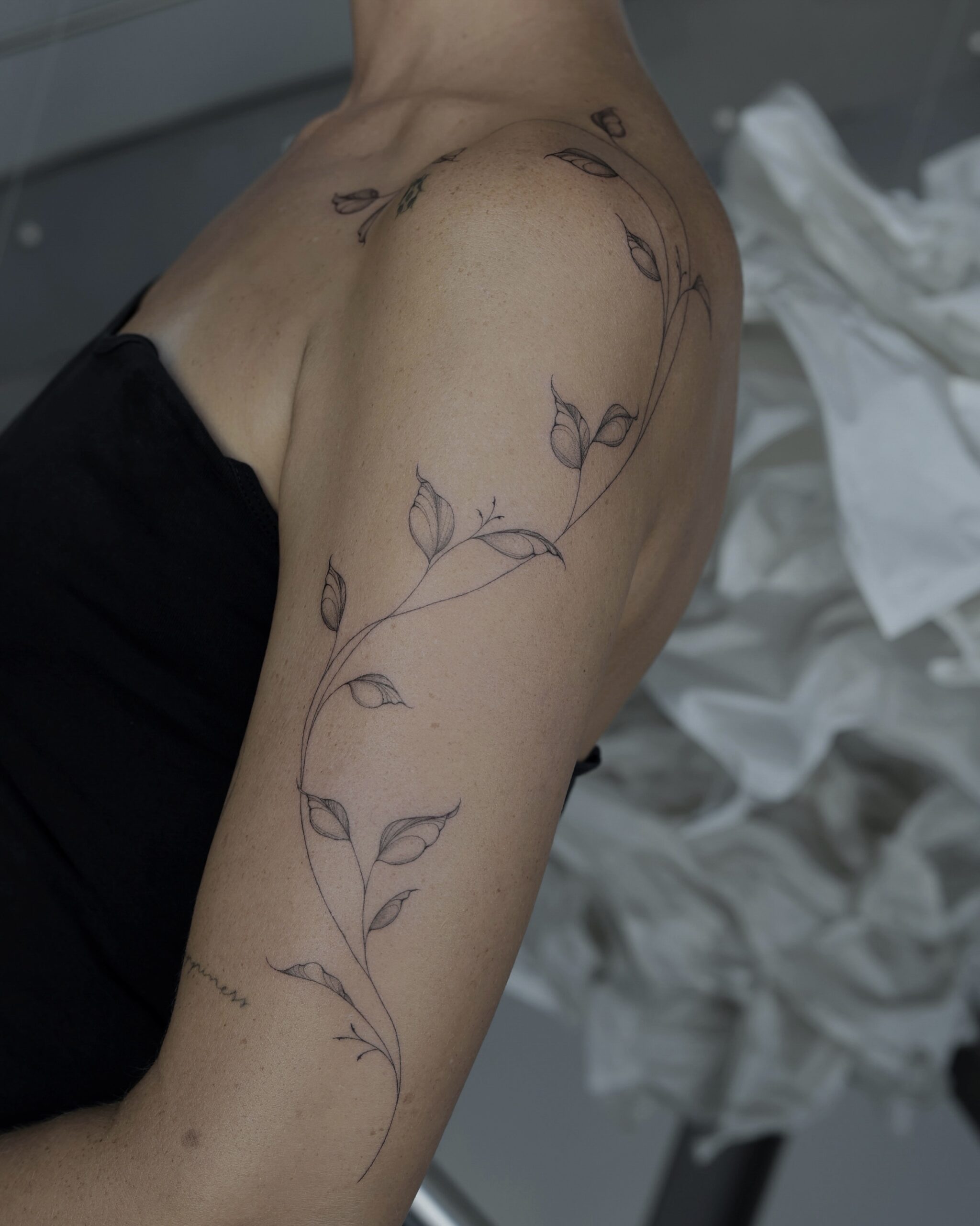 Am liebsten passe ich meine botanischen Designs freehand direkt an den Körper an. Die Designs entstehen dabei aus dem freien Zeichnen direkt auf der Haut, ohne feste Vorlage. Dabei lasse ich mich von den natürlichen Linien, Bewegungen und Proportionen des Körpers leiten. So entwickelt sich jedes Tattoo als eine Art lebendiger Schmuck, das sich harmonisch anfühlt und ganz persönlich wirkt.