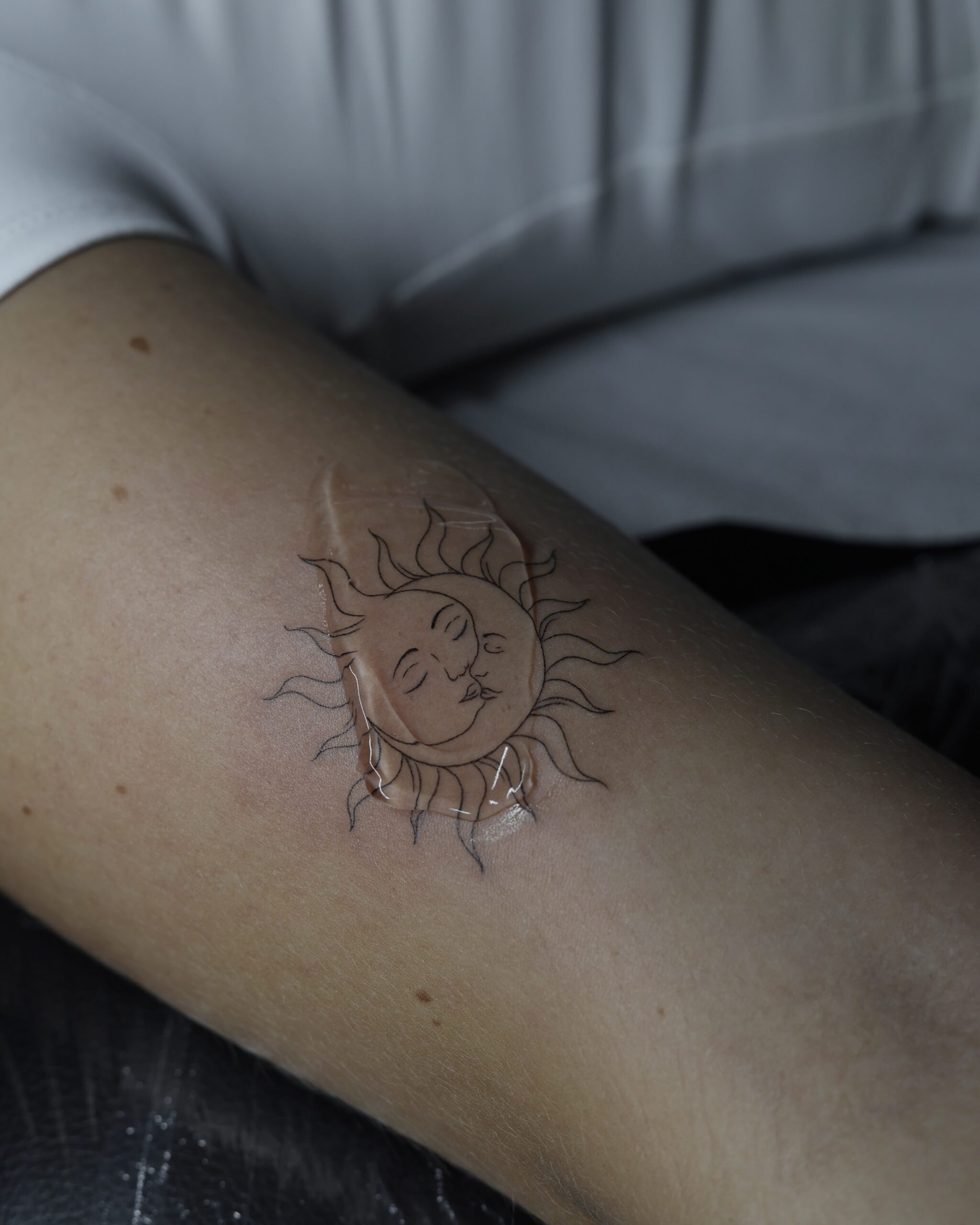 Da ich noch Apprentice bin, tätowiere ich vorerst nur Arme, Beine, Rücken und Leiste, da dort die Hautbeschaffenheit perfekt für Fineline Tattoos ist. Hände und Füße tätowiere ich nicht.